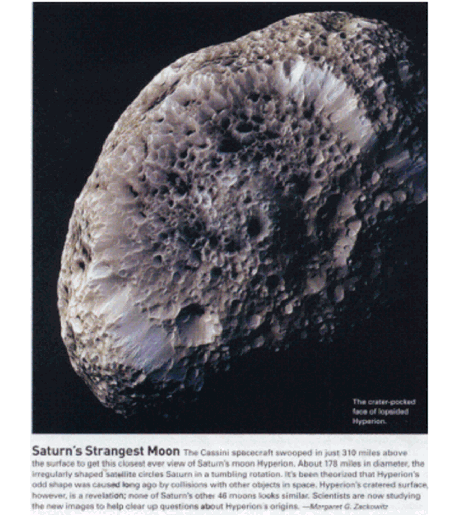What a remarkable story the National Geographic April 06, Cassini spacecraft picture of Hyperion tells.